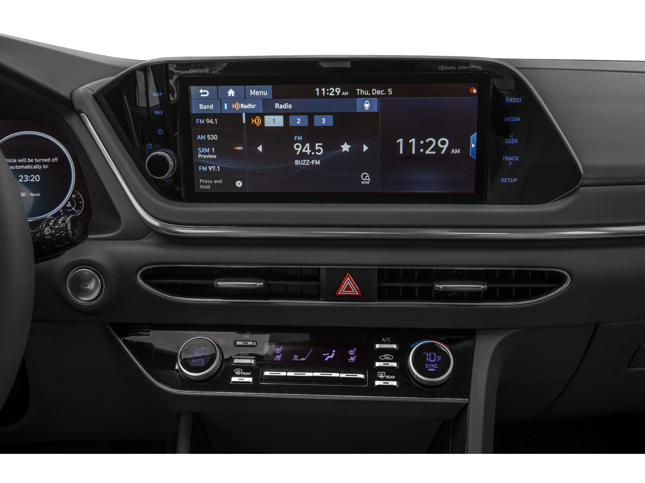 - Radio: AM/FM/MP3/HD/SiriusXM Display Audio w/Nav -inc: 10.25" color touchscreen, highway drive assist, integrated Bluetooth®, Blue Link connected car system, Apple CarPlay, Android Auto, USB charge port, diversity antenna for navigation and HERE HD traffic